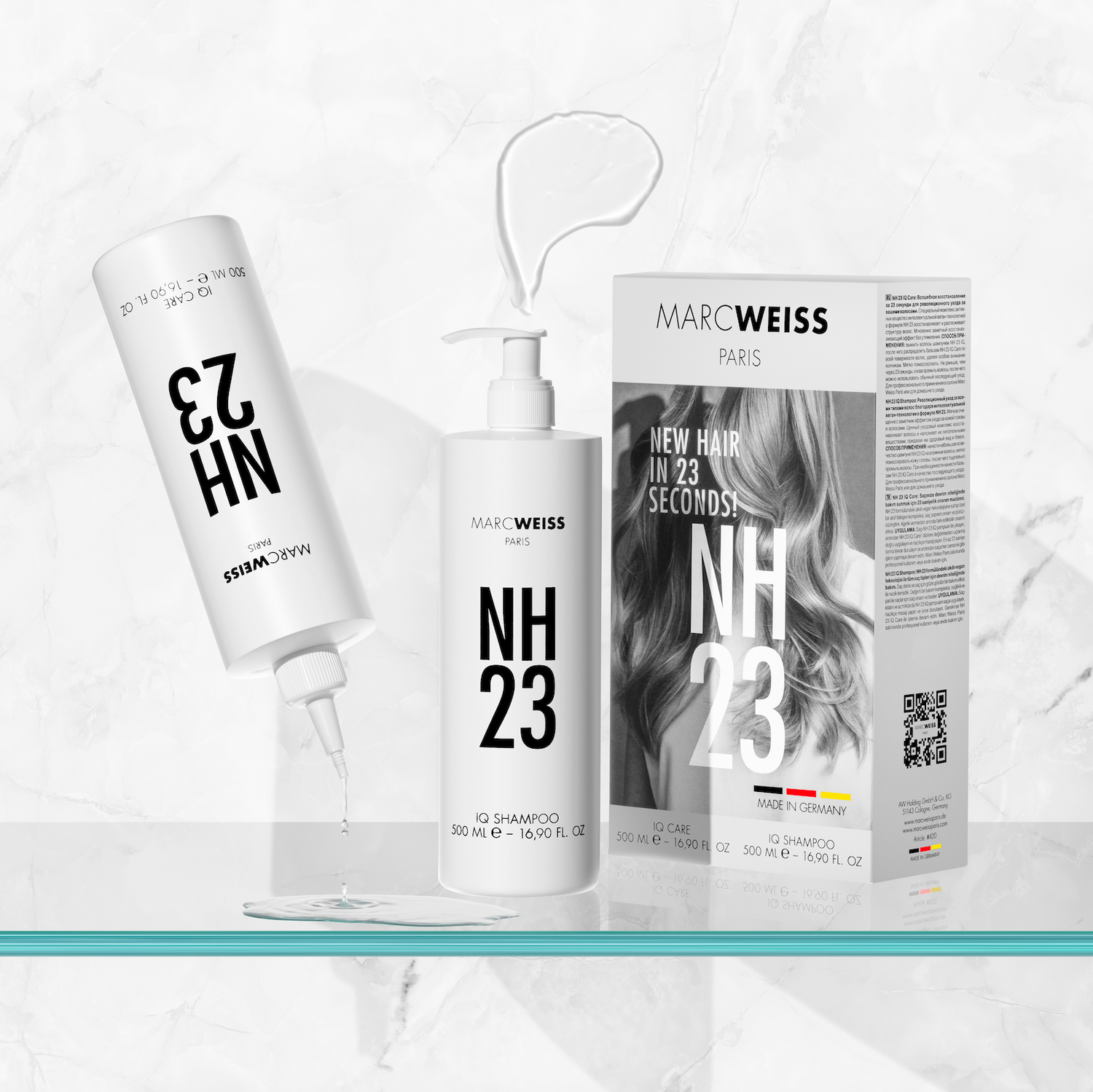 The NH23 Repair Kit is a complete hair repair set consisting of our iconic NH23 IQ Shampoo and NH23 IQ Care. Our vegan, color-safe formula penetrates deeply to repair and hydrate where needed most. Its unique protein complex strengthens and restores hair structure, while the polymer inulin smooths and seals the cuticle for a silky finish. Enjoy instant results: smooth, shiny, and revitalized hair.